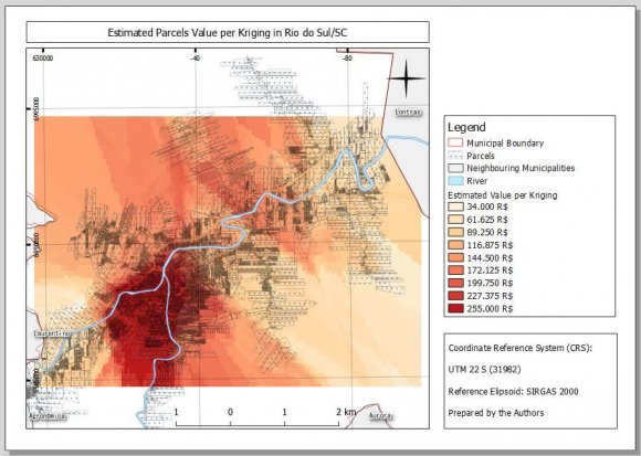 The case of study object complexity suggests that the research and its methods attended its expectations and brought information to craft others and more complex discussions about this territory. From that, other scientific investigations can take advantage of this "window of opportunity" to identify and analyze which other variables could complement the correlations between properties value/price on this regions, collecting data, for example, of rent prices, buildings for sale or real estate market prices for already built places. These variables could complement the current analysis from the method presented here and expand the comprehension about the territorial transformations of Rio do Sul municipality, also opening new interpretations about the acts of its spatial agents.