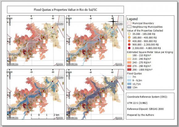 After the application of the methods presented on this research (geoprocessing techniques together with kriging), we ascertained some spatial correlations about the real estate market values concerning its spatial locations, being reached by floods or not, concluding that this factor has territorial relevancy. However, it is not the only and excluding variable on this matter.