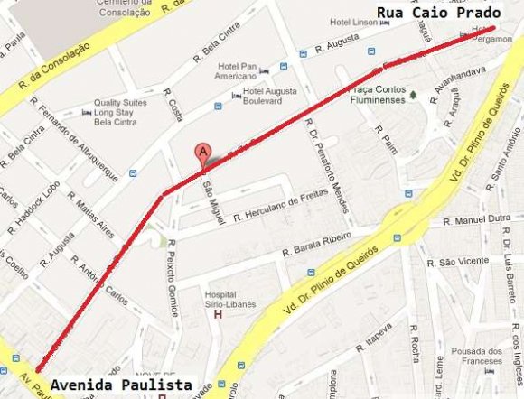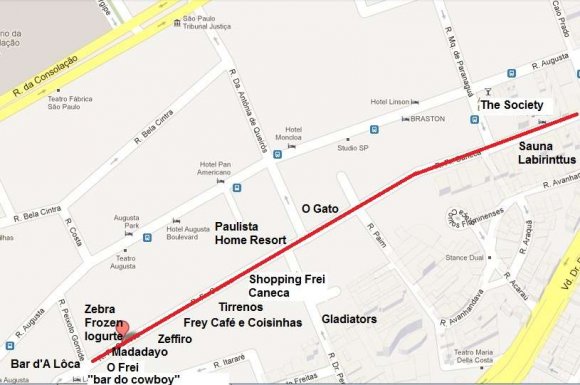 Márciosays he comes frequently to FreiCaneca Street from Augusta Street, but he uses the path between Augusta -PeixotoGomide to get to the Bar d"ALoca, for example.