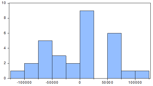 | shows the results of residual diagnosis on estimated models. The linear model specified in equation 6 was estimated, and the result indicates that | variables to explain the level of economic development. However, the model is not reliable because it is serially correlated. Consequently, the series was logged in order |