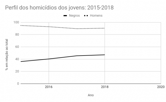Regarding the racial profile of murdered youth, it is clear that, although the population in the city of Porto Alegre is predominantly white -79.23% of white people, compared to only 20.24% of black people -, the percentage of young black people murdered was 36.1% in 2015, increasing to 40.3% in 2016, reaching the level of 46.5% in 2017, and increasing to 47,1% in 2018. This represents a percentage increase of 11% over the years studied. The upward trend in mortality rates among black youth, and the decrease in white youth, shows the substantial difference in the life trajectories faced by each of these groups: it is as if they lived "in different cities" or, in in other words, in a territory that makes them vulnerable to racial criteria. Such criterion is the only one that shows a significant upward curve and, therefore, seems to be one of the most relevant to be observed in the fight against mortality and violence among young people.