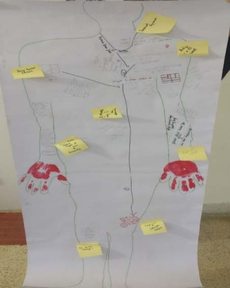Body mapping allows embodying emotions of traumatic experiences (Crawford, 2010). The activities designed allows emotional expression in children creatively (Hemmings, 1995). It is partially considered to be a child centered methodology (Mitchell, 2006;Gamlin, 2011). Children working in labor fields and residing in poverty embodied their illness to their bod and social context. Thus, body maps seem to be an explorative instrument for this research, especially to be used with children. The selective advantage of the tool is detailed account of experience obtained.