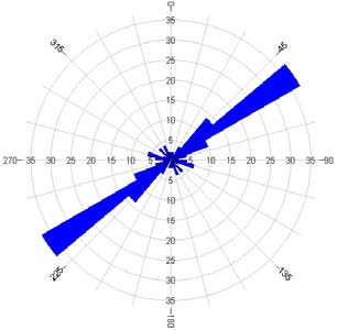 The orientations of lineaments and faults lines were created by using rose diagrams ( Figure 5) and the results mostly showed great similarities. The main trends observed in the structural truth map (fault map), field features and the lineament map could be recognized in these diagrams, showing strongly major trend in NE-SW, and the subdominant directions were in E-W, NW-SE and N-S. All these lineaments directions were coincide with the major faults directions.